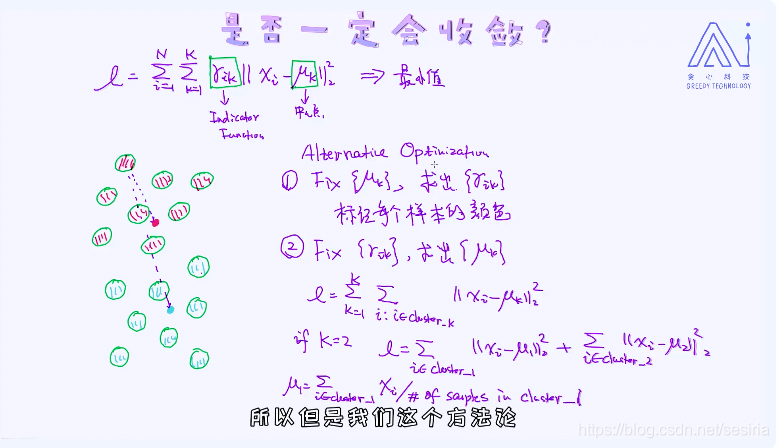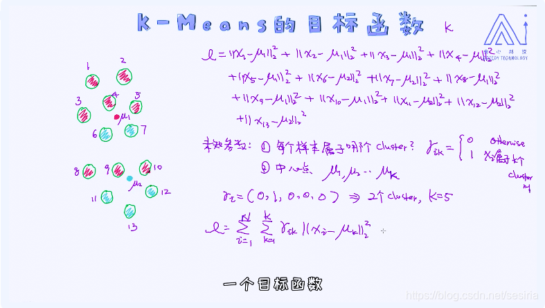 At first ,we don't known the cluster and the center point, how do we define the loss function?