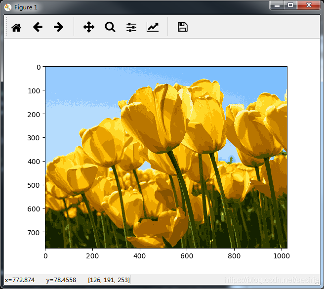 #import packagesfrom pylab import imread, imshow, figure, show, subplotimport numpy as npfrom sklearn.cluster import KMeansfrom copy import deepcopy# read the image dataimg = imread('Tulips.jpg')imshow(img)show()# convert three dimension tensor into two dimension matrixpixel = img.reshape(img.shape[0] * img.shape[1], 3)pixel_new = deepcopy(pixel)print (img.shape)# construct K-means modelmodel = KMeans(n_clusters = 3)labels = model.fit_predict(pixel)palette = model.cluster_centers_for i in range(len(pixel)):    pixel_new[i,:] = palette[labels[i]]# reshow the compressed imageimshow(pixel_new.reshape(img.shape[0], img.shape[1], 3))show()